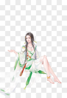 一组手绘四季系列古风人物之戴面纱采莲的少女素材