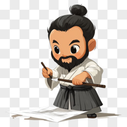 手绘卡通夫子用戒尺打学童手心免抠素材