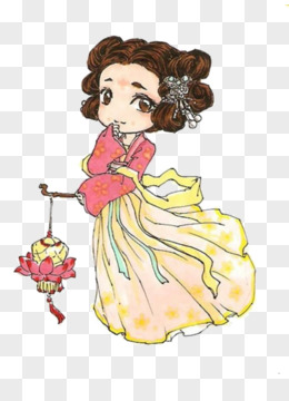 手绘古代漫画提花灯少女