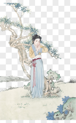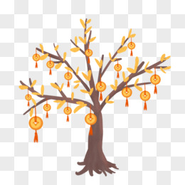 卡通手绘免抠古人看见发财树眉开眼笑元素