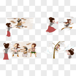 手绘卡通古代人物拿起斧头砍树免抠素材