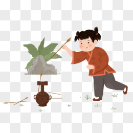 手绘古代玩投壶的男孩免抠素材