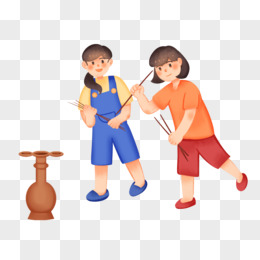 手绘卡通双人投壶元素