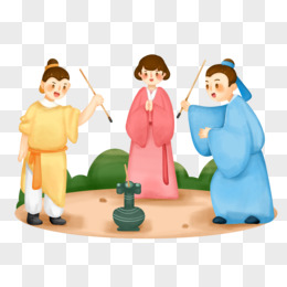 手绘古代三人投壶免抠素材