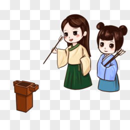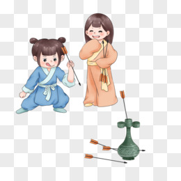 手绘古装Q版卡通两人女孩男孩投壶素材