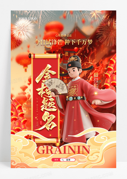 3D立体风中国古代状元郎红色状元免抠元素