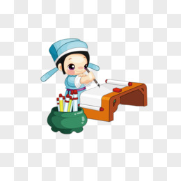 卡通手绘可爱小状元拿着毛笔免抠元素