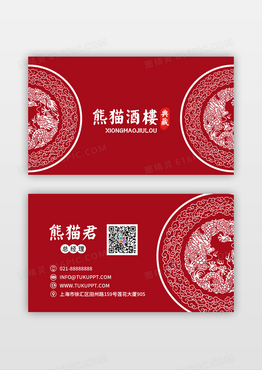 中国风名片红色古典大气中国风酒楼酒店餐饮业名片