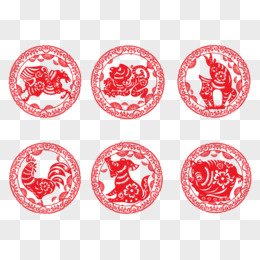 红色十二生肖剪纸龙手绘设计