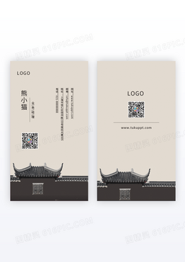 古典中国风屋檐名片中国风名片竖版名片模版