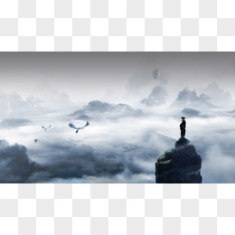 蓝天白云山峰孤独的人