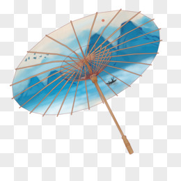手绘的古风山水油纸伞素材