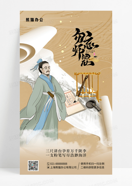 中国风插画勿忘师恩教师节手机宣传海报