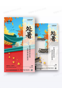 一组手绘四季系列古风人物之手拿枫叶的少女素材