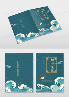 读书笔记画册封面中国风国潮海浪仙鹤