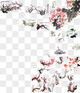 一组梅兰竹菊水墨免抠元素