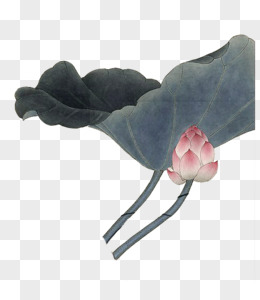 荷花莲花荷叶古风古建筑简笔画免抠元素