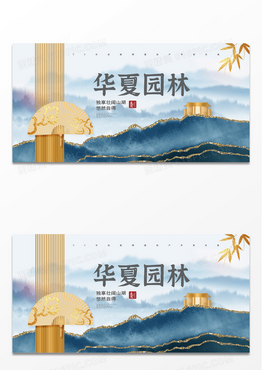 古风传统山水华夏园林房地产创意展板设计