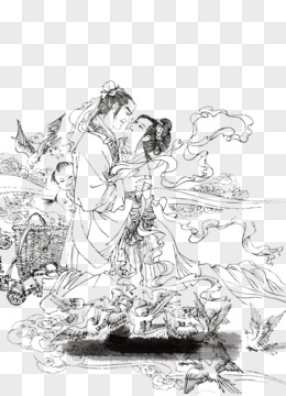 古风简笔画牛郎织女相会