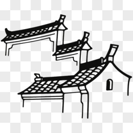 江南古风简笔画免抠元素