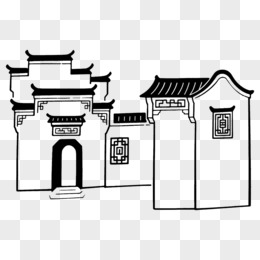 江南建筑古风简笔画免抠元素