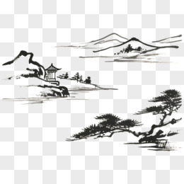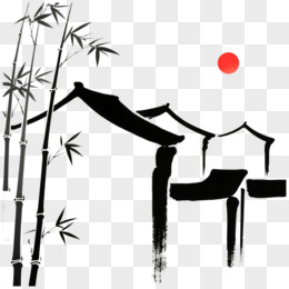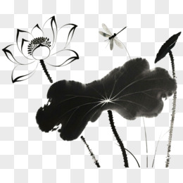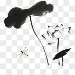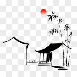 荷花莲花荷叶古风古建筑简笔画免抠元素