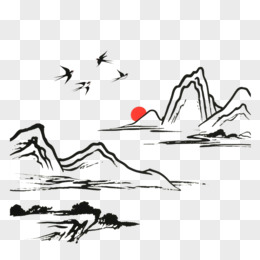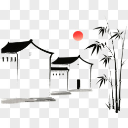 仙鹤马头墙古风古建筑简笔画免抠元素