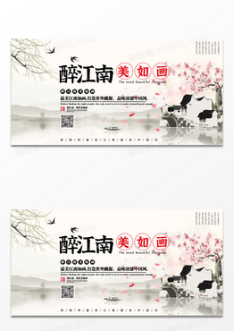 中国风古风醉江南美如画展板设计