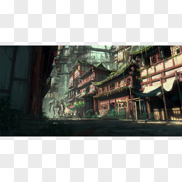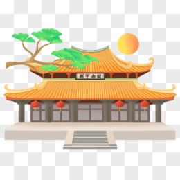 一组手绘插画中国风古代建筑瓦片屋檐套图合集元素