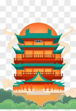 一组手绘插画中国风古代建筑瓦片屋檐套图合集元素