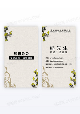 时尚古风水墨刺绣菊花古风水墨竖版名片