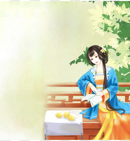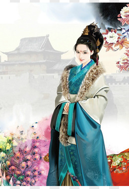 手绘唐装美女免抠元素
