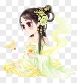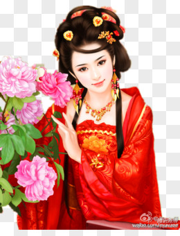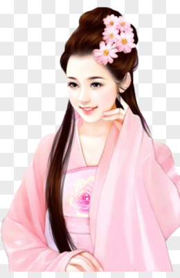 手绘古装戴花的美女素材