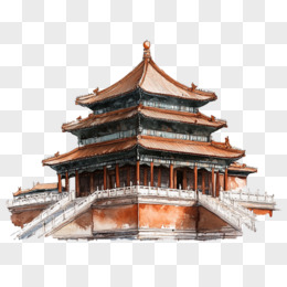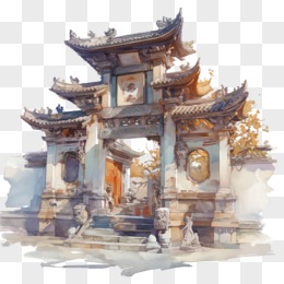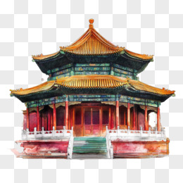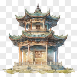 水彩中国国风建筑免抠元素