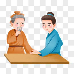 手绘插画古风学子向老师问好免抠素材