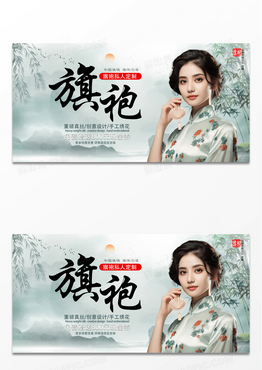手绘国潮金线青山绿水凉亭大雁景观元素
