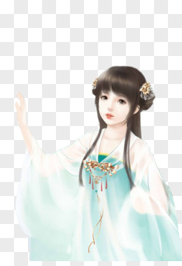 卡通手绘古风弹琵琶的小女孩免抠元素