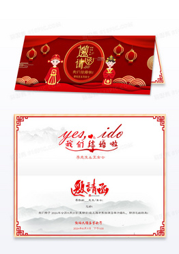 红金中式邀请函结婚邀请函折页中式婚礼邀请函
