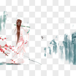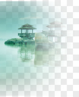 手绘中国风水墨画渔翁在湖面上钓鱼元素