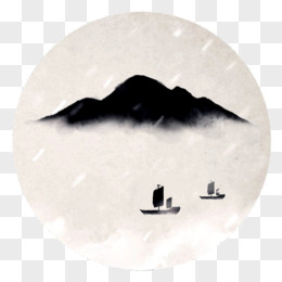 手绘中国风水墨画江上渔者垂钓元素