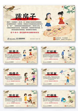 简约时尚古风中国风童年游戏插画人物宣传海报套图组合