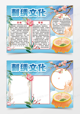 刺绣文化云朵蓝色背景花朵古风手抄报