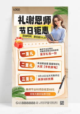 黄色复古风礼谢恩师节日钜惠活动促销海报