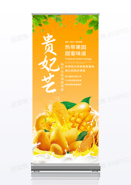 简约黄色小清新贵妃芒新鲜时令水果宣传X展架