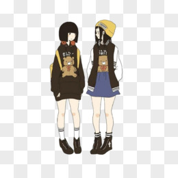 卡通手绘闺蜜姐妹一起吃火锅素材