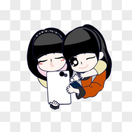 手绘自拍合照的四个女孩免抠元素