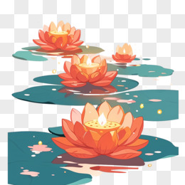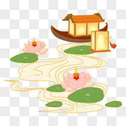 卡通风中元节莲花灯免抠元素