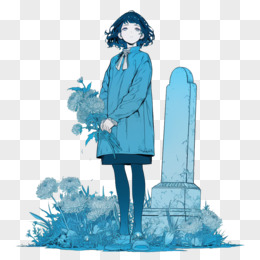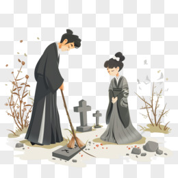 卡通风中元节两个女子祭祀扫墓免抠元素