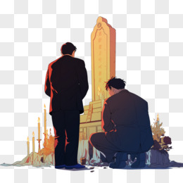 卡通风中元节两个西装男子祭祀扫墓免抠元素