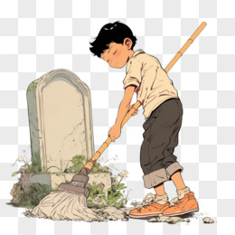 卡通风中元节西装男子祭祀扫墓免抠元素